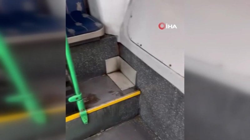 98 AB Halkalı Bakırköy seferini yapan otobüste ilginç görüntü kameralara yansıdı.