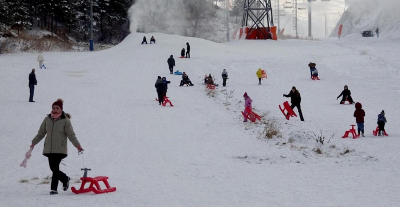 Kış turizminin gözde mekanlarından Erzurum'daki Palandöken Kayak Merkezi'nde sezon açıldı. 200 bin metreküp kar serilen pistlerin bir bölümünde kayak yapılırken, acemi pistinin olduğu bölüm kızakçılarla doldu.