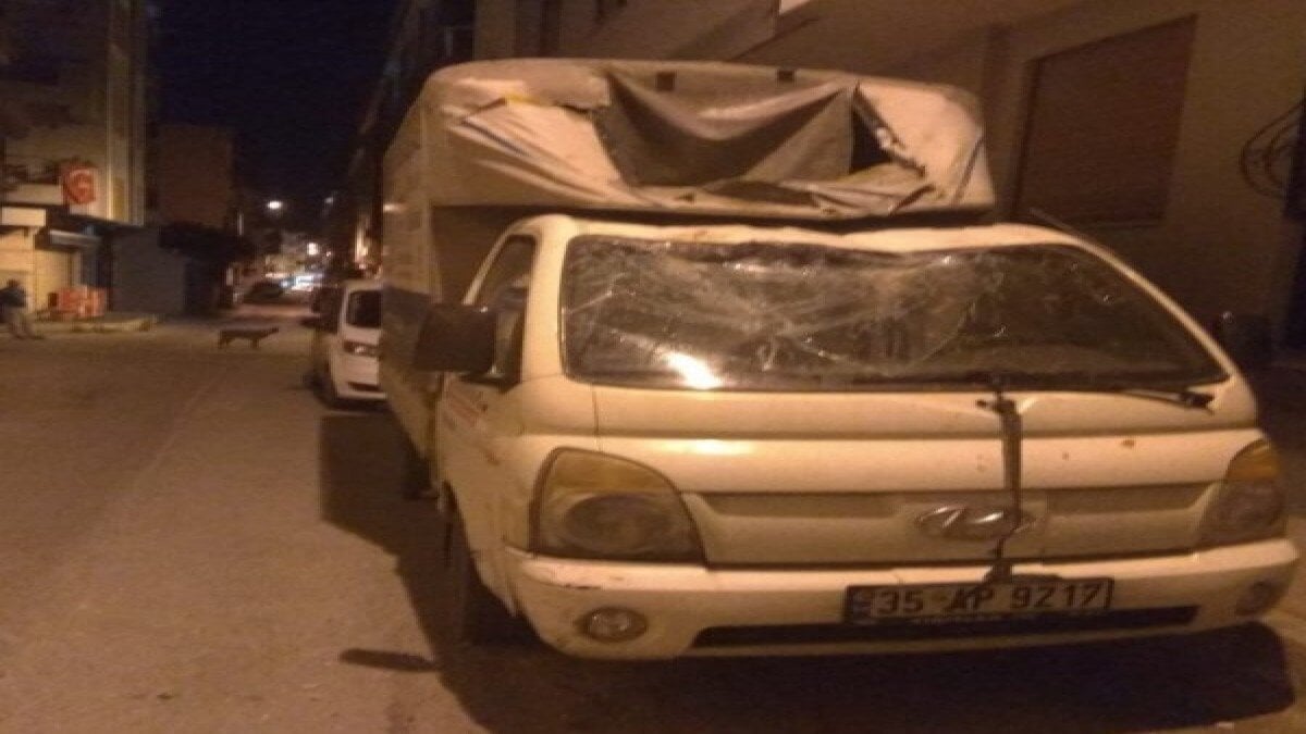 İzmir’in Gaziemir ilçesinde geçtiğimiz gece yaşanan olayda, iş yerine ait aracın üzerine beton parçaları atıldığını haber alan İsmail Aydın hemen aracının bulunduğu yere gitti.