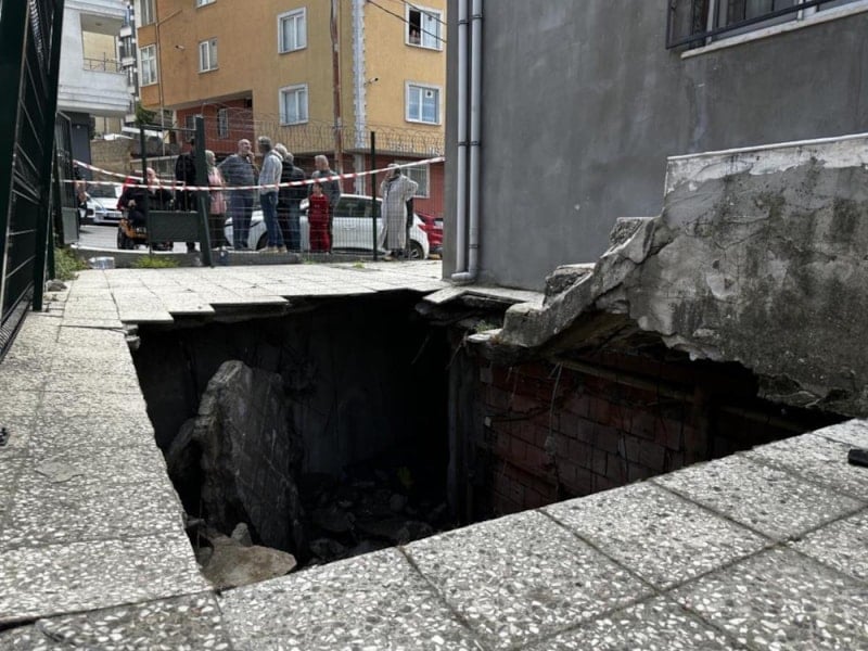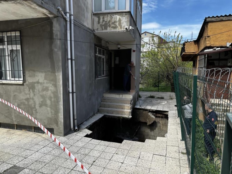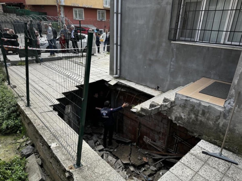 İstanbul Pendik'te dört katlı binanın bahçe zemininin bir bölümü çöktü.
