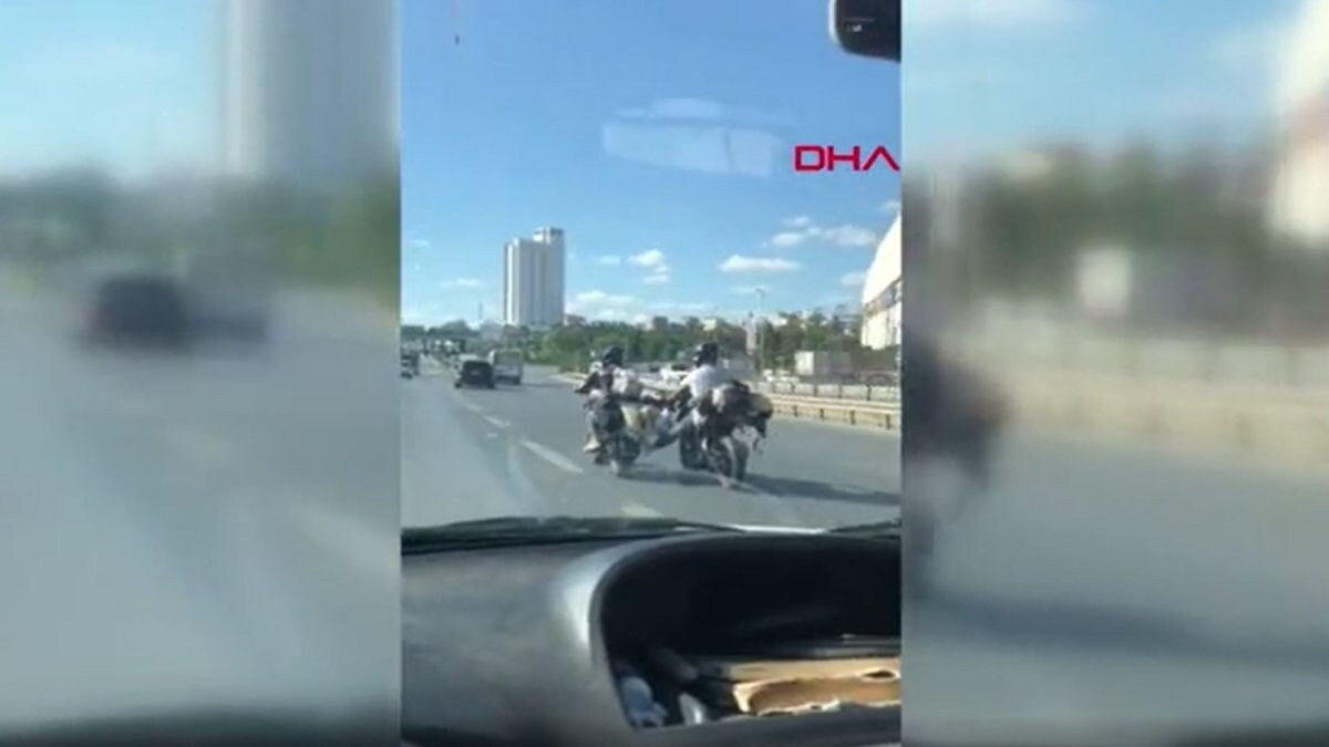 Sürücülerin hem trafiği hem kendi canlarını tehlikeye attığı anlar, başka bir sürücü tarafından cep telefonu kamerası ile saniye saniye kaydedildi.