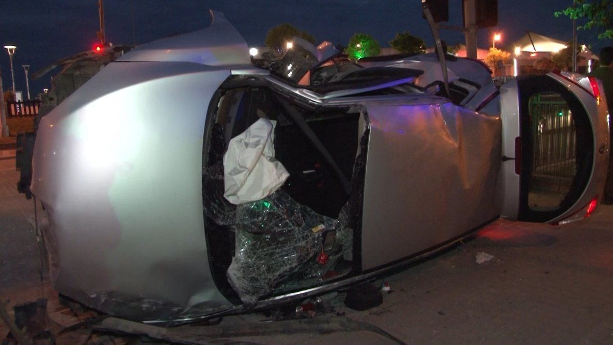 Pendik'te hız yapan sürücü takla attı ViDEO
