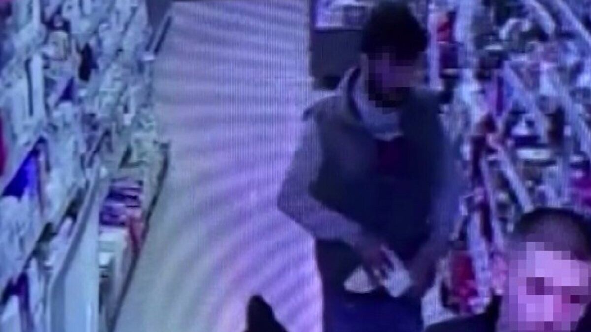 Müşteri gibi markete gelen iki şahıstan biri, kasiyeri lafa tutup oyalamaya başladı. Diğer hırsız ise kutu kutu çikolataları pantolonunun içine sıkıştırarak olay yerinden hızla uzaklaştı.