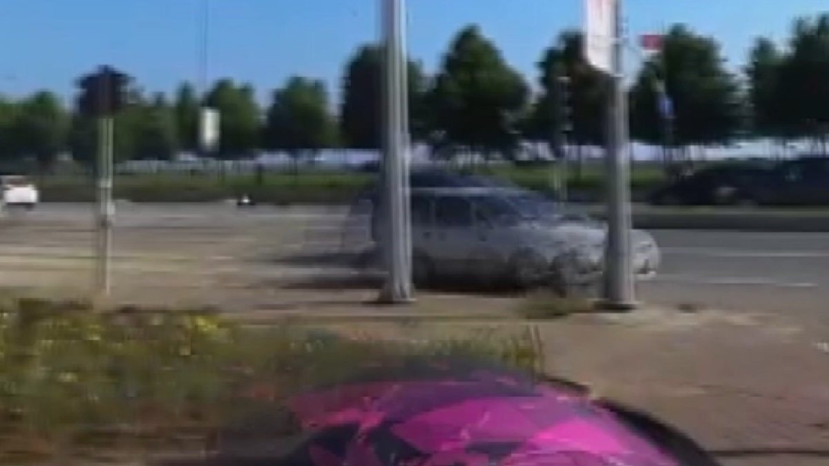 Kaza anı, kırmızı ışıkta bekleyen bir motosikletlinin kask kamerasına yansırken polis olayla ilgili çalışma başlattı.