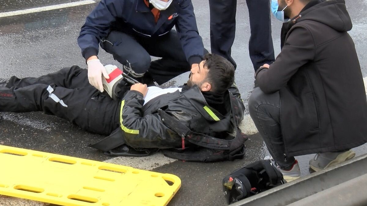 Kazada çarpmanın etkisiyle motosiklet sürücüsü İsmail Bitkaya yaralandı. Sipariş yetiştirmeye çalışırken kaza geçiren kuryeyi, çevredeki vatandaşlar da yalnız bırakmadı.