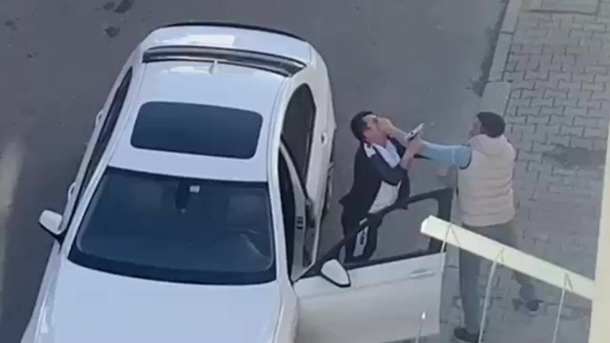 Yol verme nedeniyle tartışan iki kişinin birbirlerine silahla ve blok beton ile saldırdığı anlar vatandaşın cep telefonu kamerasına saniye saniye yansıdı.