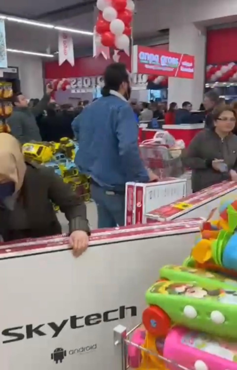 Yoğunlukla mücadele etmeye çalışan mağaza çalışanları zor anlar yaşadı.