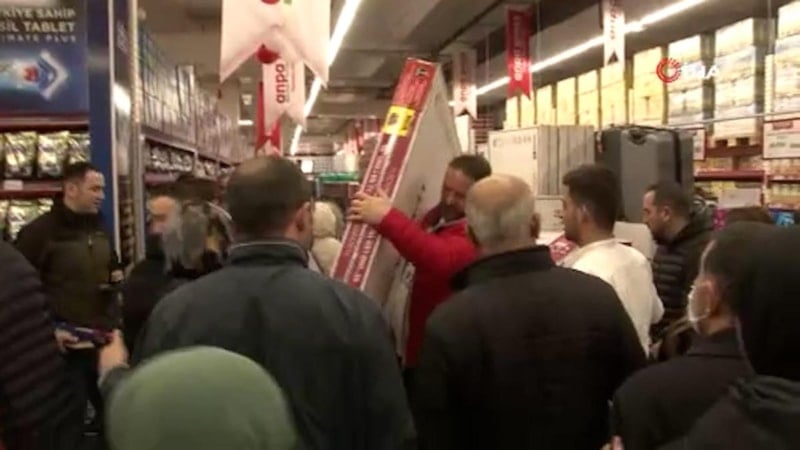 Aykut Öztürk isimli bir vatandaş ise “Televizyon almaya geldim. Piyasa fiyatı 8-9 bin liraydı. Burada televizyonu 5 bin liraya aldım. Daha fiyatlara bakmadım. Böyle ummuyordum ama bayağı izdiham varmış. Yarım saat önce geldim, anca girebildim.” diye konuştu.