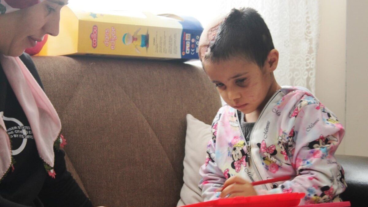 Site bahçesinde yaşanan feci olayda ölümden dönen 4 yaşındaki Asiye, yeni evindeki ilk gününde neşesi ile dikkat çekerken, kendisine hediye edilen tablet ve boyama seti ile oynadı.