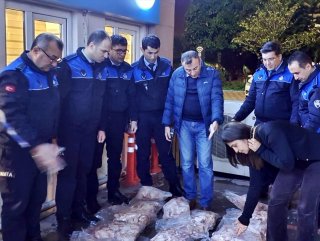 Zabıta ve polis ekipleri, araçta yaptıkları aramada, piyasaya sürülmek üzere hazırlanmış ağır koku yayan 170 kilogram et buldu.