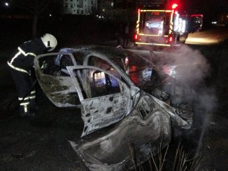 Polisten kaçan sürücünün otomobili, kaza yaparak yandı