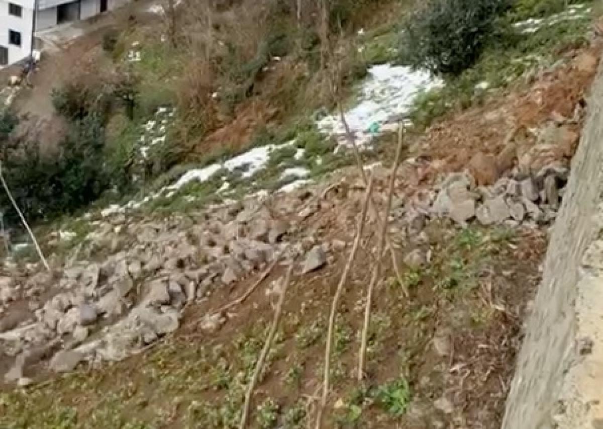 Sağanak yağışın hafiflediği bölgede, suya doygun hale gelen toprak ağırlığını taşıyamayınca bir bahçe duvarı çöktü. Yıkılma anı, çevredeki bir vatandaşın cep telefonu kamerasına saniye saniye yansıdı. Köyün bağlantısını sağlayan yol kapanmış olsa da alternatif güzergâhlarla ulaşım sağlanıyor. Ekipler, hem yolu açmak hem de heyelanın yarattığı zararları gidermek için çalışmalarını aralıksız sürdürüyor.