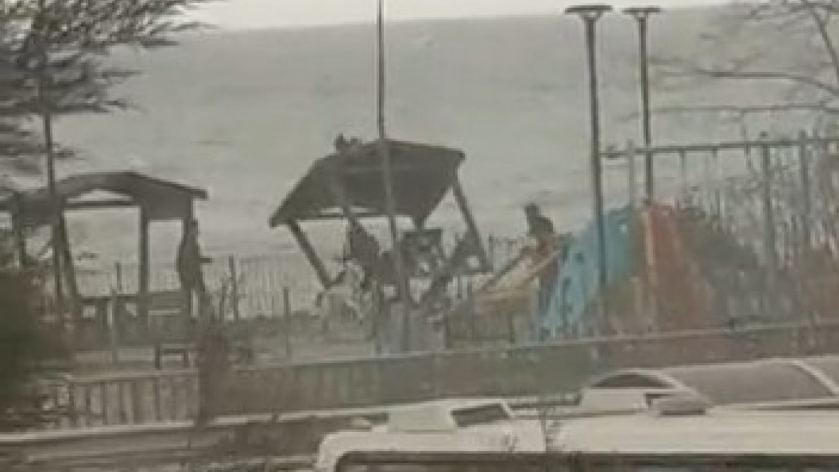 Kimliği belirsiz bir grup genç, öğle saatlerinde sahilde bir araya geldi.