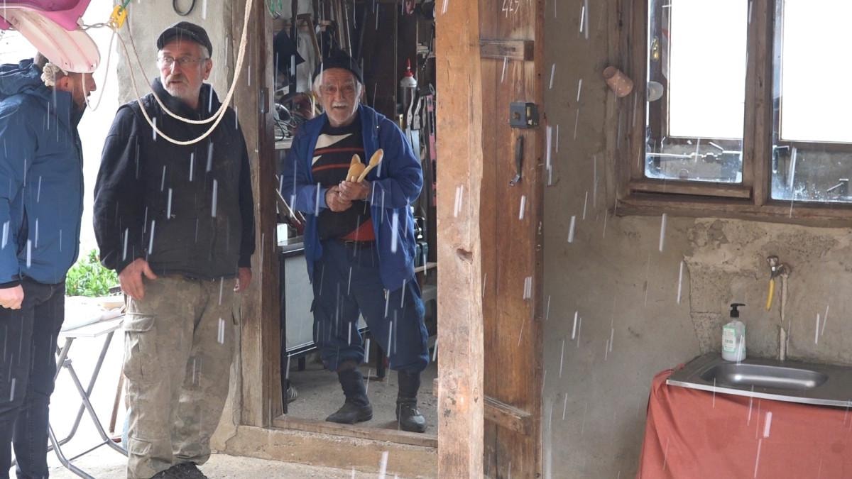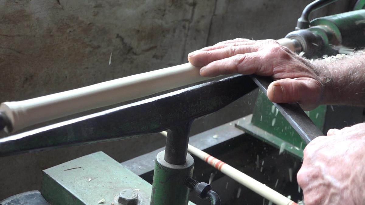 Babam ağaçtan düştü. Sonrasında 1 hafta yaşadı. Babamda bir sol eğri vardı. Onu sağa çevirttirdim. Sonra ufak ufak öğrendim. 15 yaşından beri bu işi yapıyorum. Aslında kolay iştir ama zor yönleri de var. Yaş ilerledikçe günde 2 tane zor yapıyorum. Çok ağaçlardan denedim. Şimşir, armut, gürgen, kızılağaç ile yapmayı denedim. En iyisi şimşir ama ondan sonra armut. Şimşir kurudu gitti, şimdi armut ile yapıyorum. Şimdi günde 2 tane yapıyorum ama eskiden 6-7 tane yapardım. İsteyenler oluyor. Köylerde çok kullanılıyor hala ama şehirde daha ucuzları var. Onları kullanıyorlar, bunları tercih etmiyorlar.
