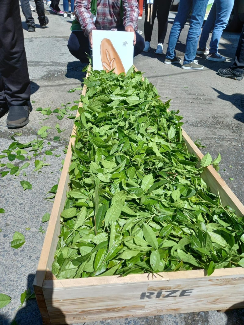 Yürüyüşe esnaf odası, bazı sivil toplum kuruluşu üyeleri ve çay üreticileri katıldı. "Çayda sömürüye son", "Topla topla bitmeyi, çay da para etmeyi" sloganları atan kalabalık, içerisine yaş çayların konulduğu tabutu omuzlarda taşıdı. Fındıklı Merkez Camisi'ne taşınan tabutla cenaze töreni de düzenlendi.