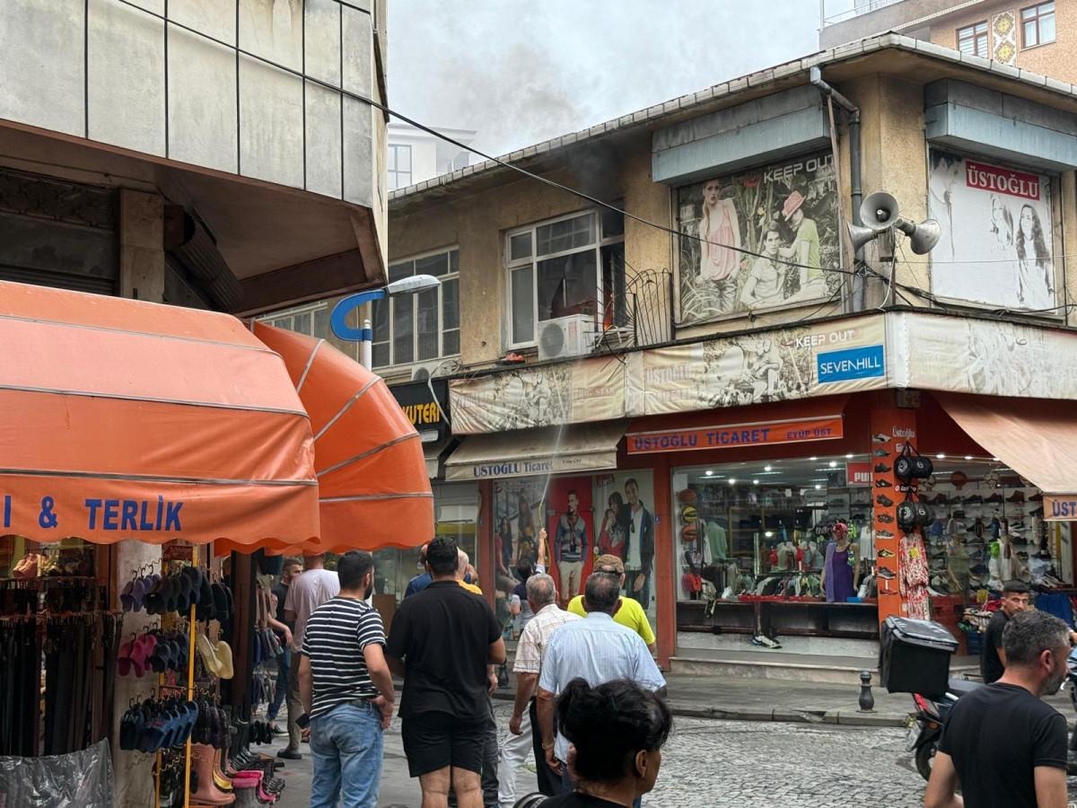 Atatürk Caddesi üzerindeki ofisten yükselen dumanları fark eden vatandaşlar, kovalar ve hortumlarla müdahale etti.