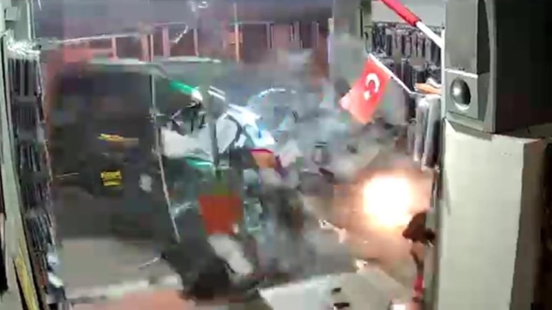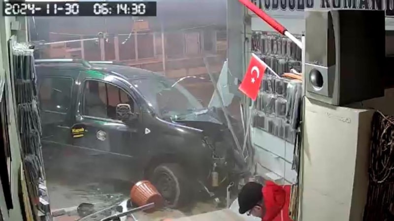 Masada oturarak namazı bekleyen Eyüboğlu’nun işletmesine camdan giren aracın şoku ile bulunduğu yerden kalkarak telefona sarıldığı görüntülerde yer aldı.
