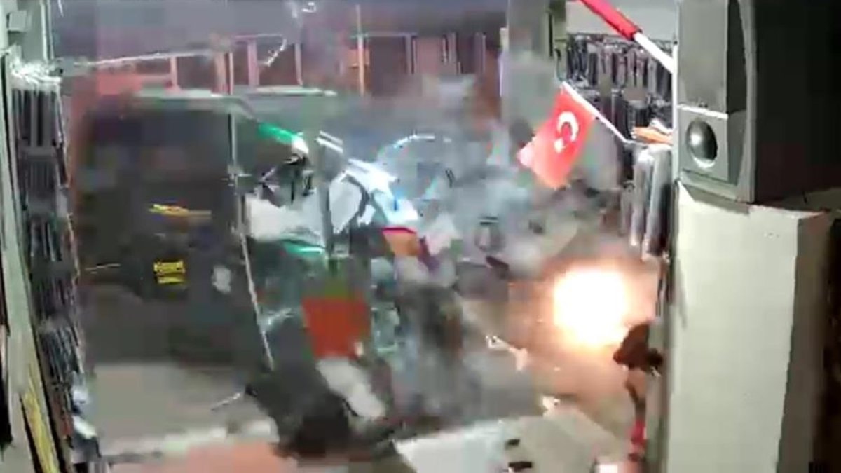 Kaza anı ise işletmenin güvenlik kameralarına anbean yansıdı.