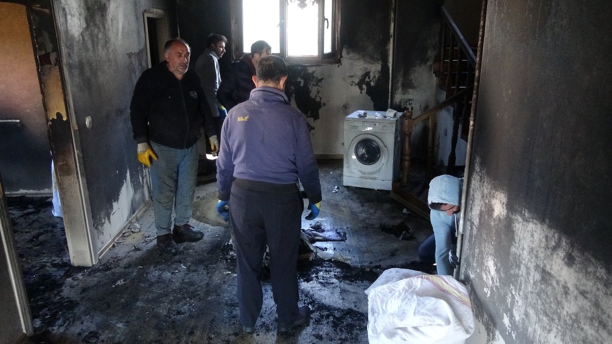 Yangın sonrası parmak izi çalışması yapan ekipler, eve giren kişi ya da kişileri bulmak için çalışmalarını sürdürüyor.