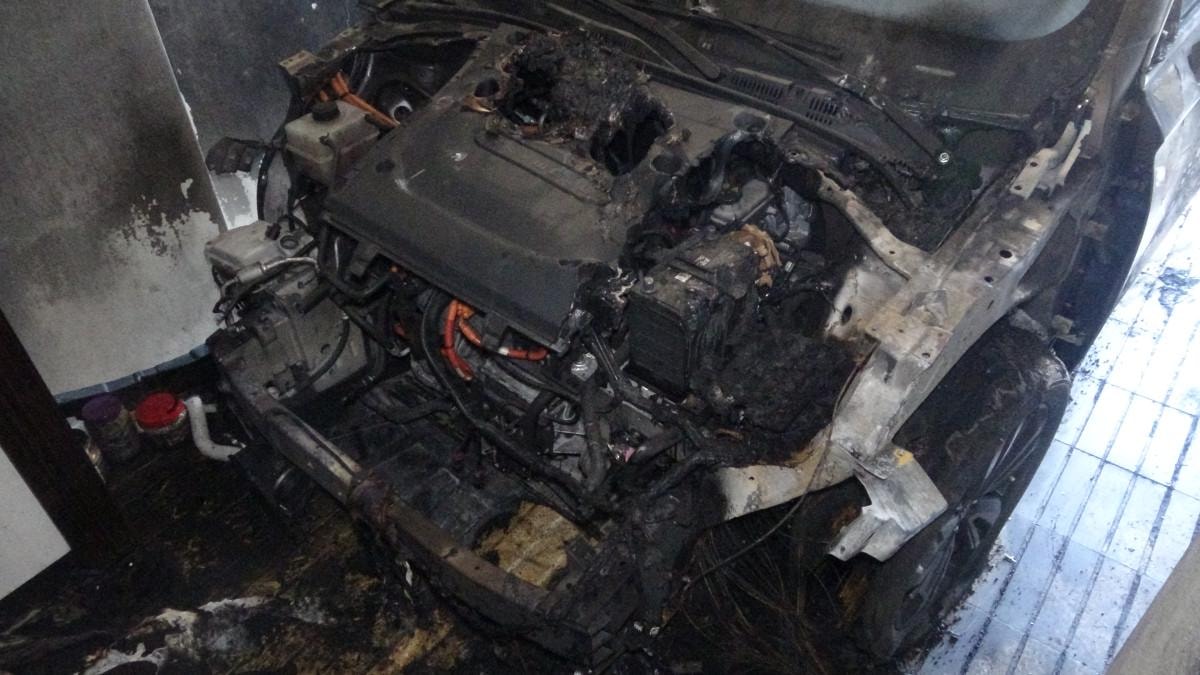 Yangının, garajdaki parçalara ayrılmış elektrikli otomobilden çıktığı belirlendi.