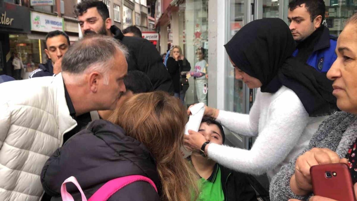 Düşmenin etkisiyle kafasından hafif yaralanan 12 yaşındaki çocuk etrafta bulunan vatandaşlar tarafından buzla müdahale edildi.