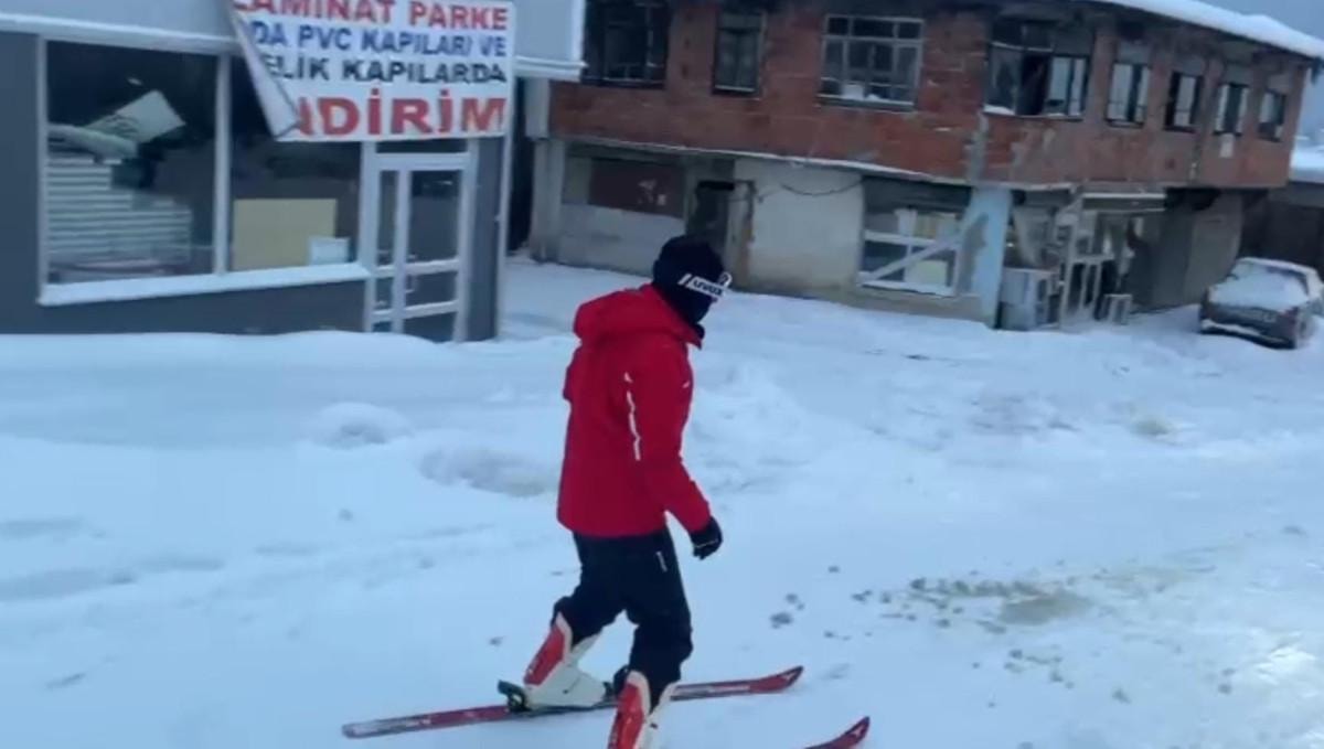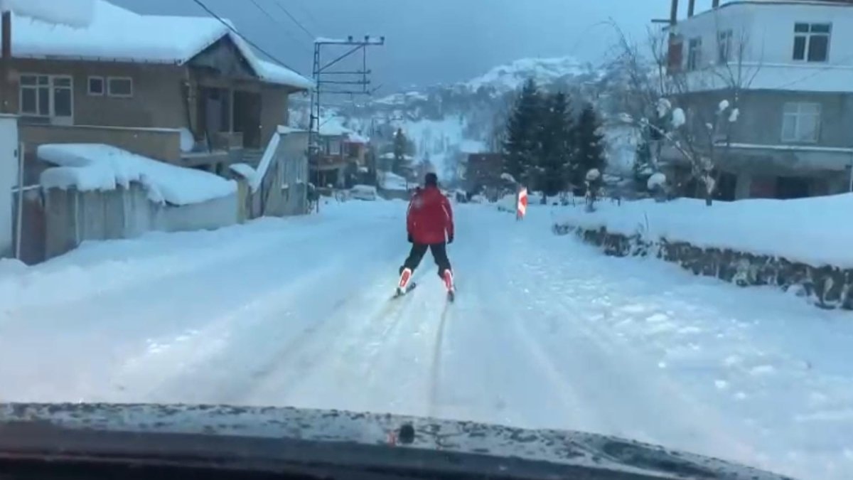 Kayak takımlarıyla köy yolundan kayarak inen Yasin Çapoğlu, "Hafta sonu havanın güzel olacağını duyunca köyümüze gitmeye karar verdik. Gittiğimizde yoğun bir kar yağışıyla karşılaştık. Evde ufak tefek eksikler vardı ancak alışverişe araçla gitmek yerine kayak takımlarımızı da yanımıza alarak farklı bir deneyim yaşamak istedik. Kayaklarla yüksek bir noktadan aşağı doğru kayarak markete ulaşmaya çalıştık.