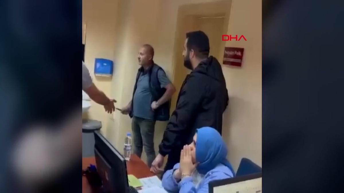 Şüphelinin poliklinikte elinde bıçakla sağlık çalışanları ile tartıştığı anlar da cep telefonu kamerasıyla kaydedildi. Görüntülerde hastane personelinin, elinde bıçak olan şüpheliyi, ikna edip, sakinleştirmeye çalıştığı anlar yer aldı.