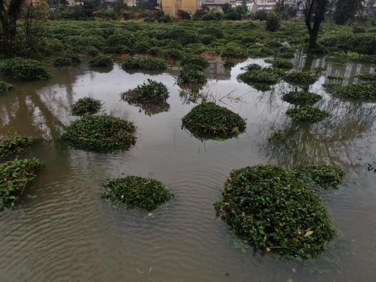 Bahçedeki su yağmurun azalmasıyla kendiliğinden çekilmeye başlasa da ağaçlar sudan tamamen kurtulamadı.