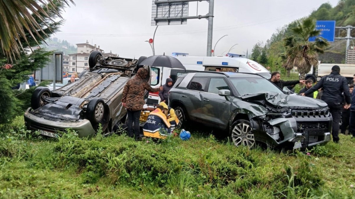 Hafif ticari araç çarpışmanın etkisiyle takla atarak refüjde ters dönerek durabildi.