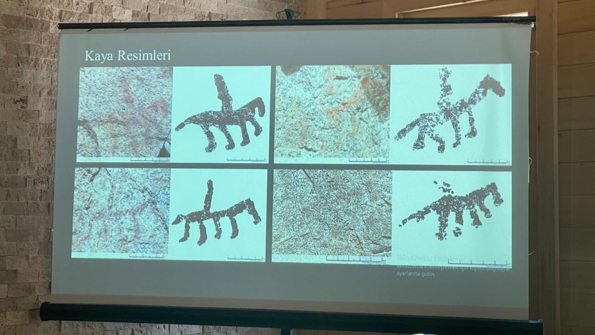 Bölgede sık orman dokusu içinde 4 metre uzunluğundaki kayalara boyama yöntemiyle işlenmiş, 4 silahsız atlı tasvirlere ve Türk toplumunun önemli simgelerinden olan kaya üzerine resmedilmiş hayat ağacı sembollerine ulaşıldı.