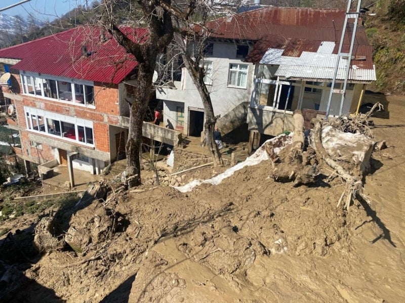Köyde bir su kesintisi olduğundan buradaydık. İftar için Ardeşen’e indik. Bir arkadaşımız yamacın kopup menfezlerin tıkandığını söyleyerek acil yardım istedi. Köye geldiğimizde yoldan kaya büyüklüğünde taşlar iniyordu. Yukarıdan gelen hafriyat menfezi tıkayınca toprak ve çamur evlere ulaştı. Evleri de şu anda boşalttık. Toplam 16 evi boşalttık. Şu anda temizleme çalışması yapıyoruz.