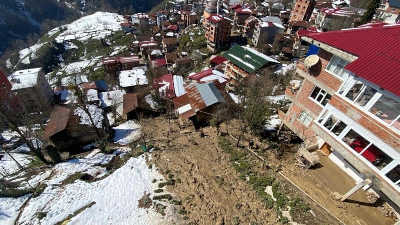 Rize'nin Ardeşen ilçesinde yamaçta biriken kar kütlesinin erimesi sonucu önceki akşam saatlerinde heyelan oldu.