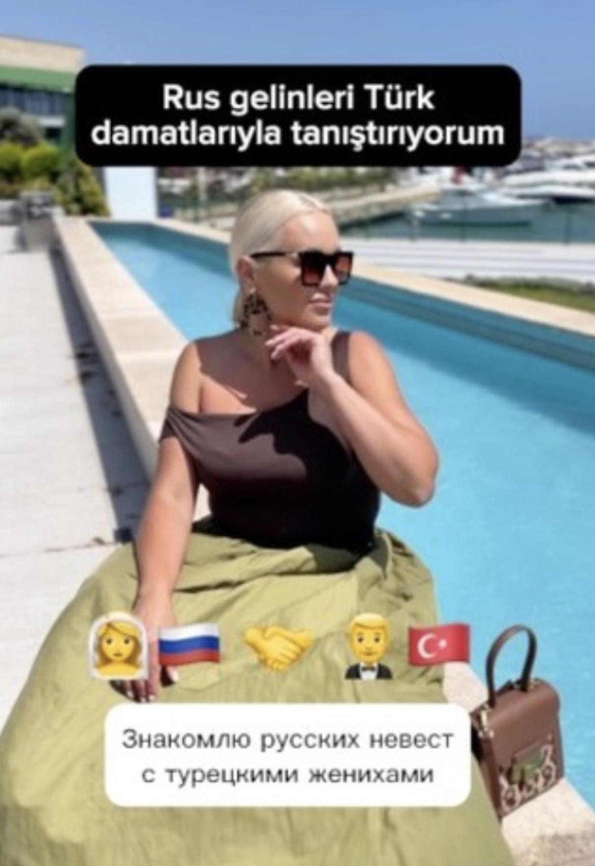 Hem Rusça hem Türkçe paylaşımlar yapan kadının sosyal medya hesaplarında, "Evlenmek ister misin? Bana mesaj at.", "Rus gelinleri Türk damatlarla buluşturuyorum", "Türkiye'nin en güzel adamları hangi şehirde." paylaşımları dikkat çekiyor.