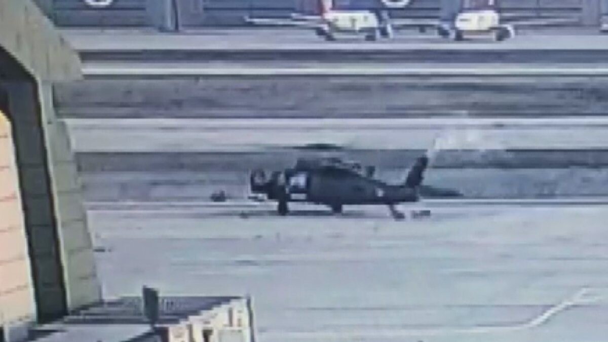 Kaza anına ilişkin görüntüler ortaya çıktı. Görüntülerde, kuyruğunu aydınlatma direğine çarpan helikopterin kendi etrafında döndüğü görülüyor.