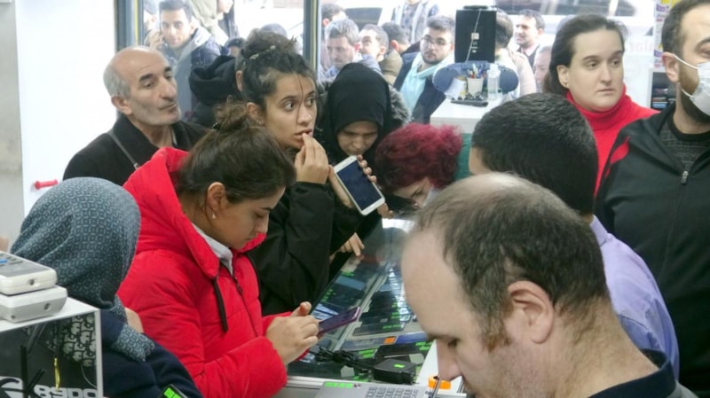 Bekleyenler, içeriye 10'ar kişilik gruplar halinde alındılar. Özellikle cep telefonu ve bilgisayar ürünlerine yoğun ilgi gösterildi.