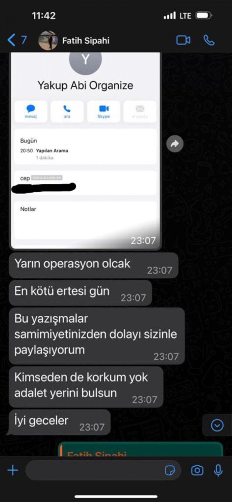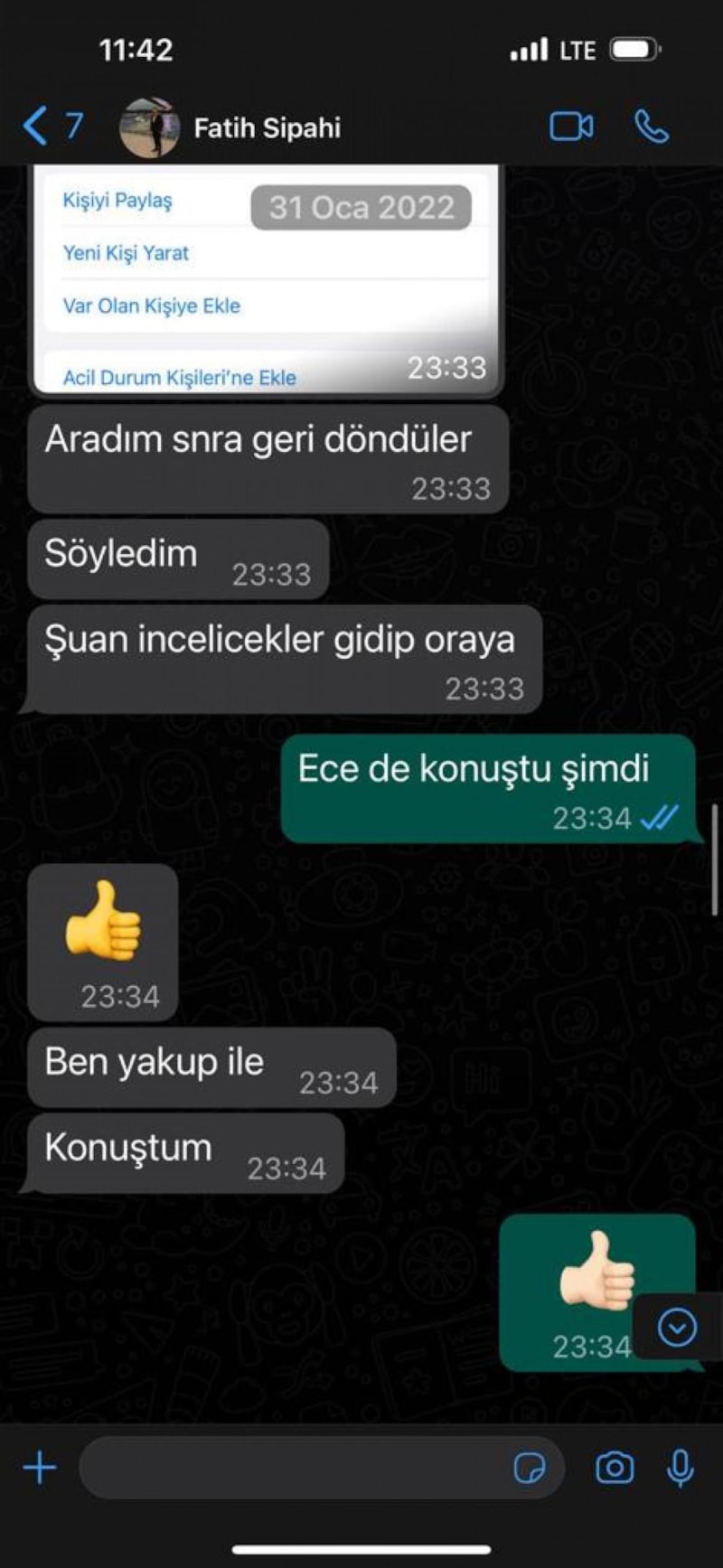 Ece Erken'in avukatı da söz alarak “Sezer Çakır, Fatih Sipahi ile olan WhatsApp yazışmalarını bulup müvekkilime göndermiş. O konuşmalarda Fatih Sipahi'nin 'Kimseden korkum yok, adalet yerini bulsun. Yarın operasyon olacak' şeklinde mesajları bulunuyor. Burada asıl konuşulması gereken şey Fatih Sipahi neden ifadesini değiştirdi?” dedi.