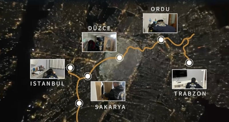 Sakarya merkezli 13 ilde belirlenen adreslere eş zamanlı operasyon düzenlendi. Sakarya merkezli İstanbul, Bursa, Antalya, Afyonkarahisar, Ordu, Adana, Trabzon, Aydın, Denizli, İzmir, Yalova ve Düzce illerinde yapılan operasyonlarda 71 şüpheli gözaltına alındı.