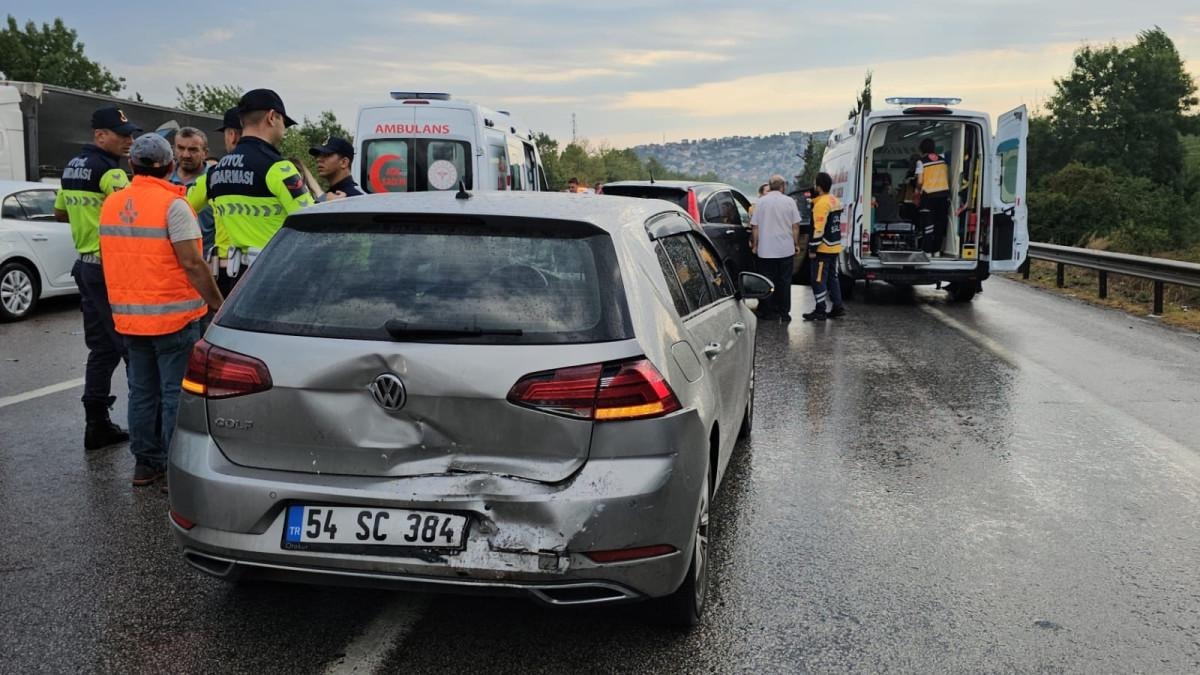 Sakarya'da TEM Otoyolu'nun Sapanca ilçesi geçişi Ankara istikametinde, aynı yönde giden ve sürücülerinin isimleri öğrenilmeyen 10 araç zincirleme kazaya karıştı.