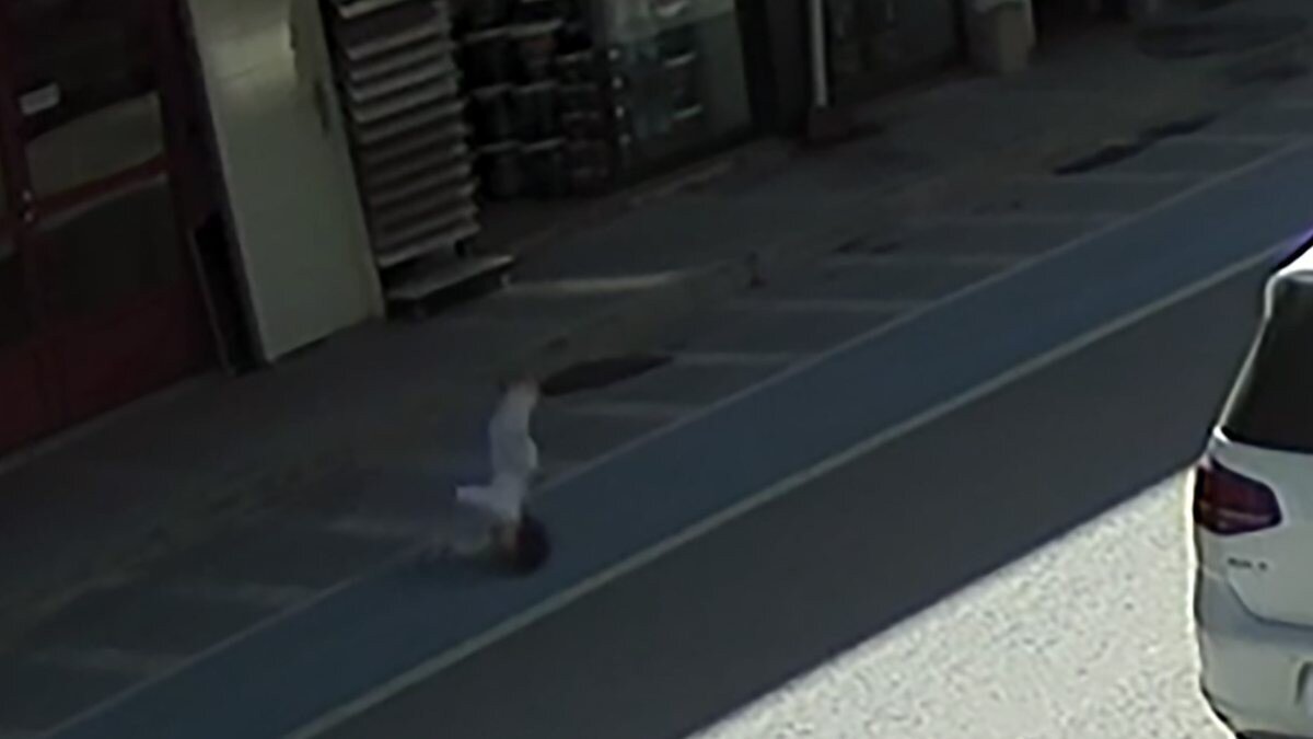 Öte yandan, çocuğun asfalta düştüğü anlar ise bölgede bulunan bir güvenlik kamerasınca kaydedildi.