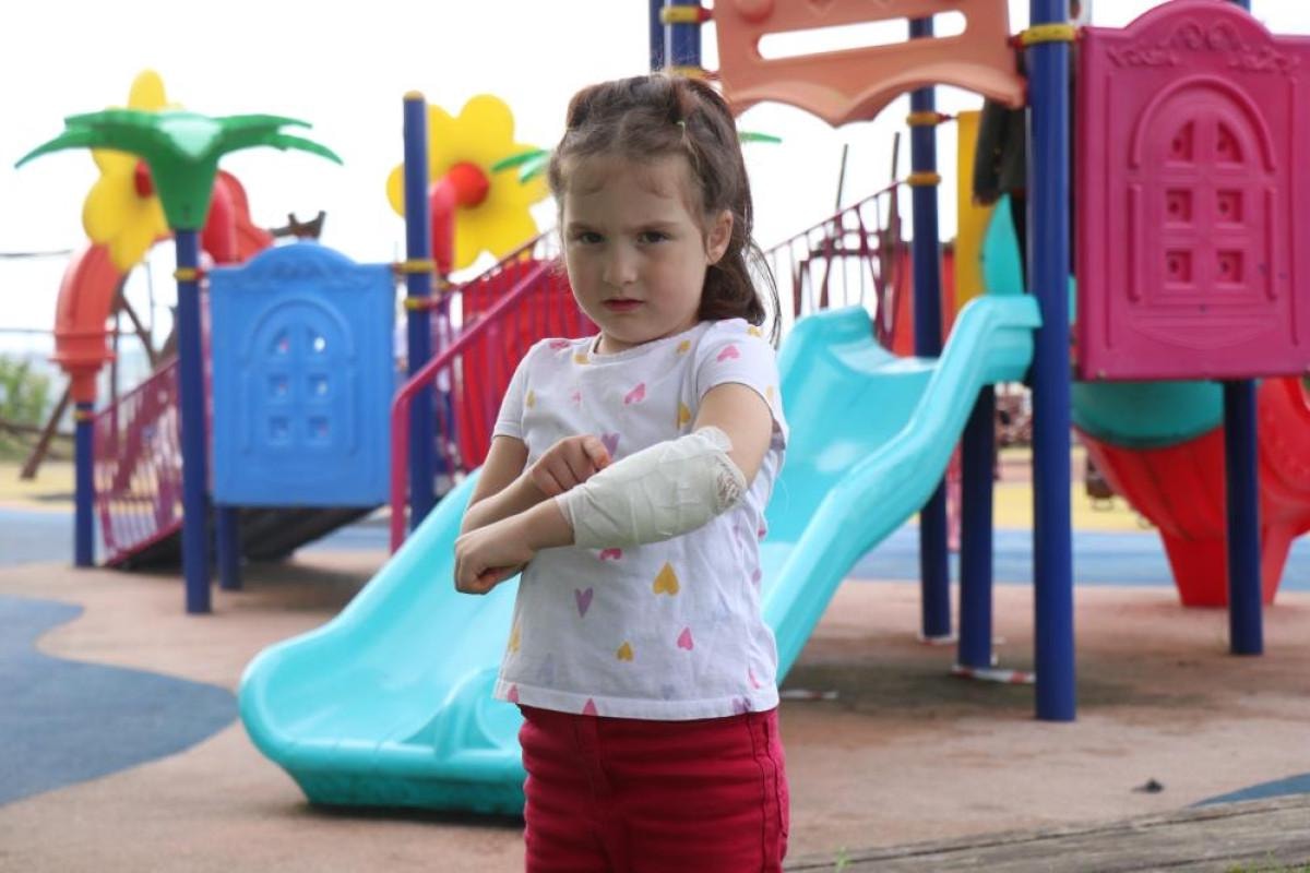 Sakarya'da Karaman Mahallesi Karaman Millet Bahçesi'nde 5 yaşındaki Erva Dinç, parkta oyun oynadığı esnada kaydırak altında yatan sokak köpeğinin saldırısına uğradı.