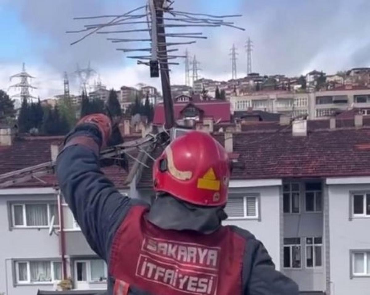Sakarya'nın Erenler ilçesi Yeşiltepe Mahallesi’nde bir binanın çatısındaki antene sıkışan karganın seslerini duyanlar, durumu 112 Acil Çağrı Merkezi'ne bildirdi. İhbar üzerine adrese Sakarya Büyükşehir Belediyesi İtfaiye Daire Başkanlığı ekipleri sevk edildi.