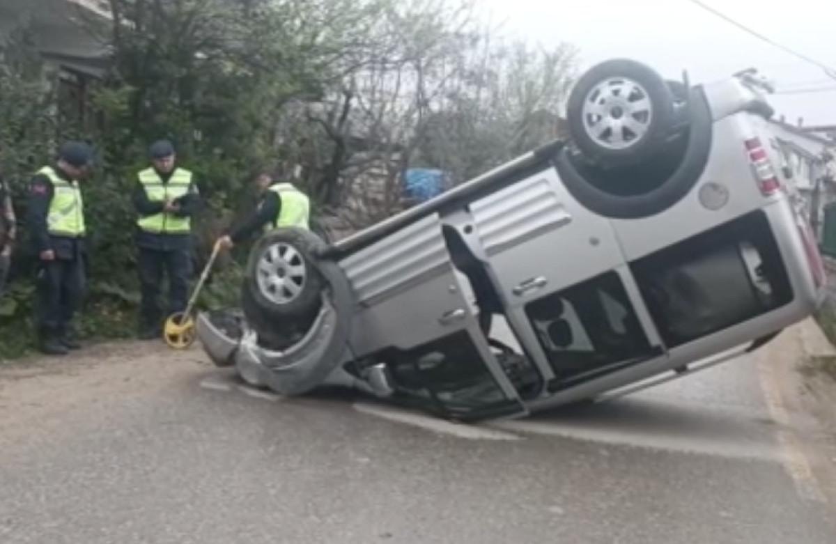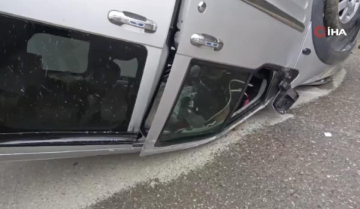 Dönüş yoluna geçen O.K. idaresindeki hafif ticari araç, sürücüsünün kontrolünden çıkarak takla attı.
