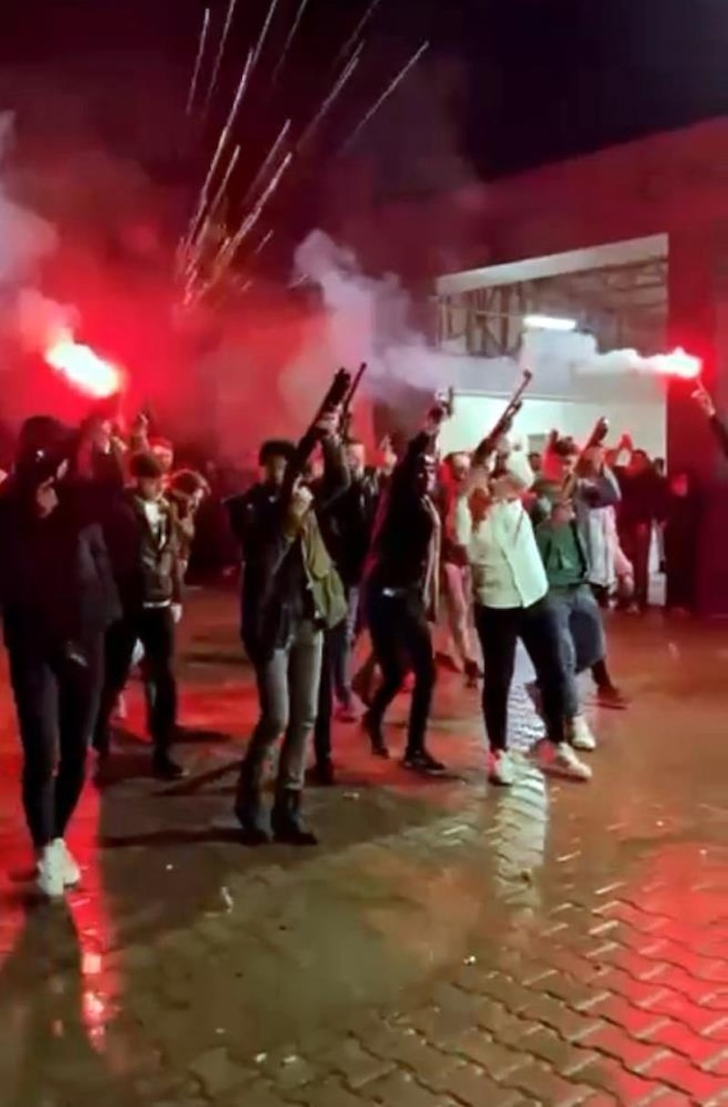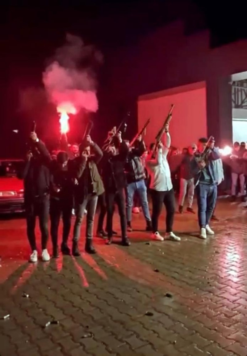 Yaklaşık 10 kişinin aynı anda havaya ateş açtığı anlar, saniye saniye cep telefonu kamerasıyla görüntülendi.