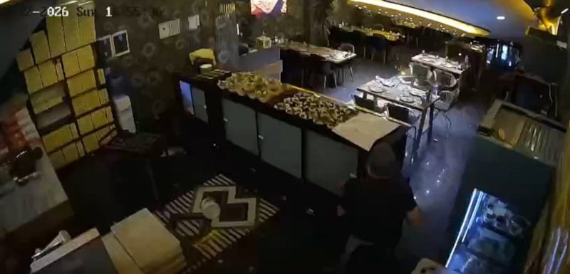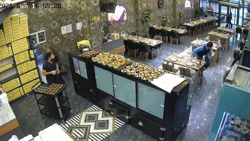 Görüntülerde; personelin mutfak ve salon kısmında çalıştığı esnada tavanın bir anda aşağı indiği, çalışanların ise güvenli yerlere kaçıştığı görülüyor.