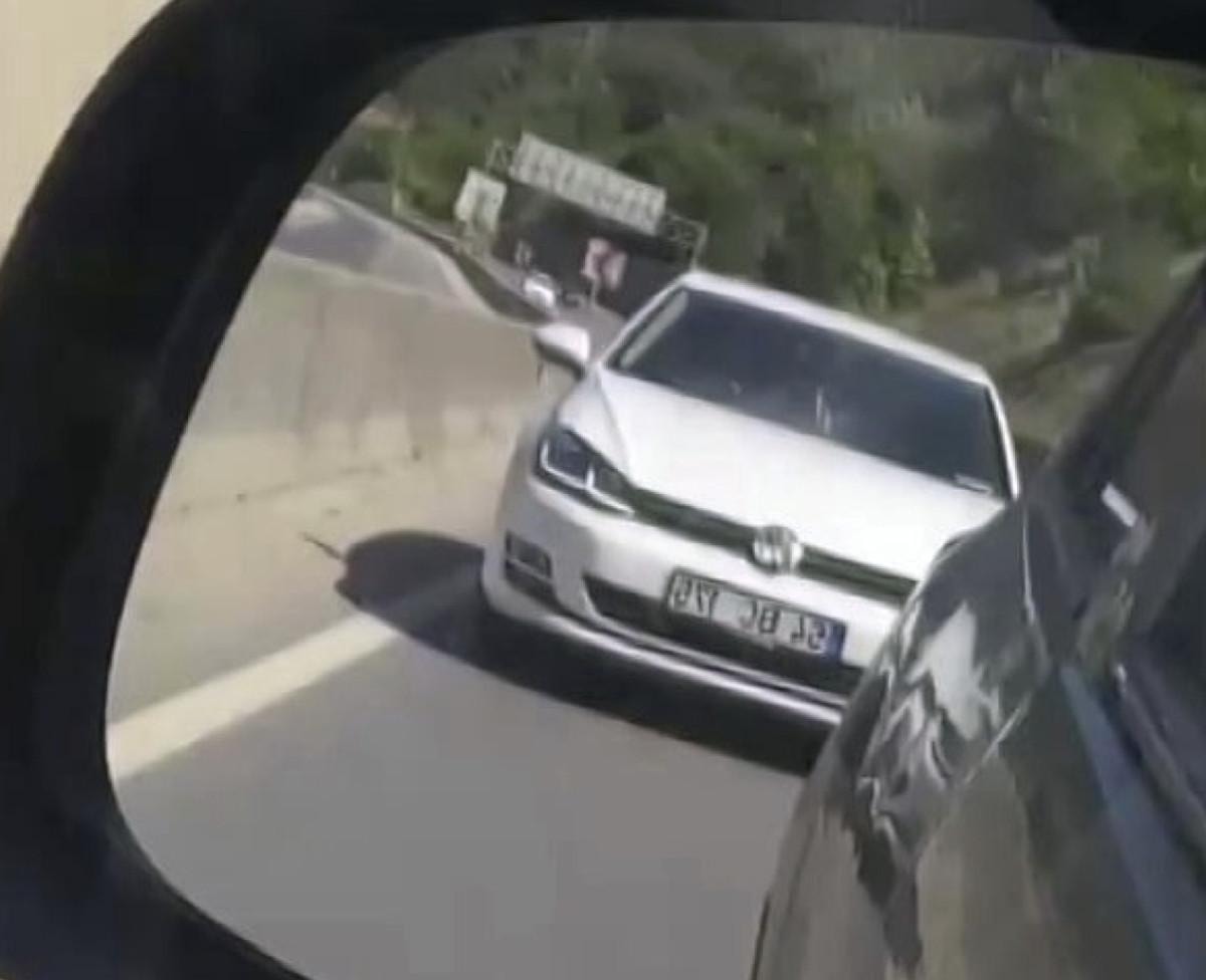 Bölgedeki yangına hızla ulaşmak için siren ve ikaz lambalarını kullanarak seyir halindeki aracın önüne geçen bir otomobil sürücüsü, tüm sesli ve görsel uyarılara rağmen ekip aracına yol vermedi.