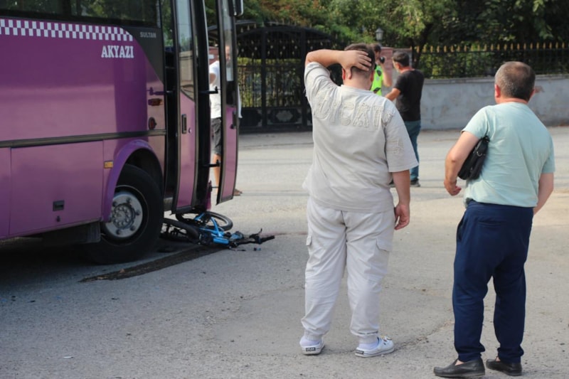 Akyazı ilçesinde sokak arasından yola çıkan bisikletli çocuk, seyir halindeki özel halk otobüsünün altında kalarak ağır yaralandı. Küçük çocuk hastaneye kaldırılarak tedavi altına alınırken, sürücü ise ifadesi alınmak üzere polis merkezine götürüldü.