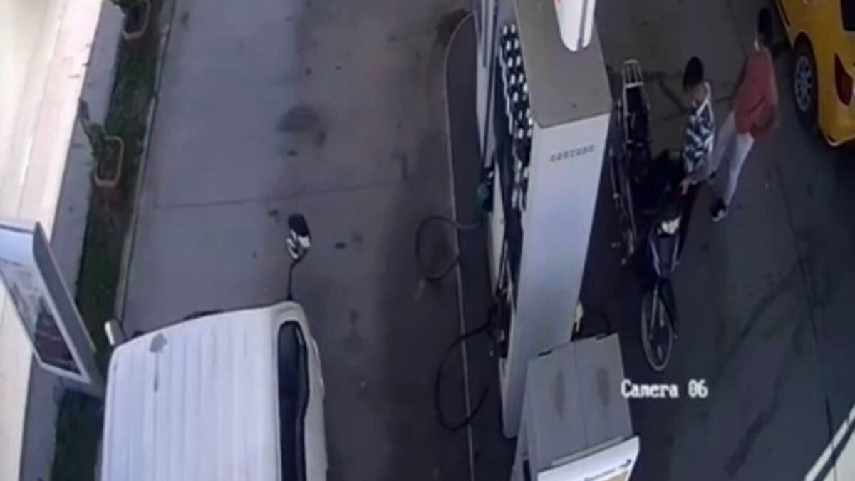 Görüntülerde; istasyon görevlisinin araca yakıt pompasını takması ve daha sonrasında pompa takılıyken aracın harekete geçmesi ile pompanın fırlayarak yakıt almak isteyen gence çarptığı anlar yer aldı.