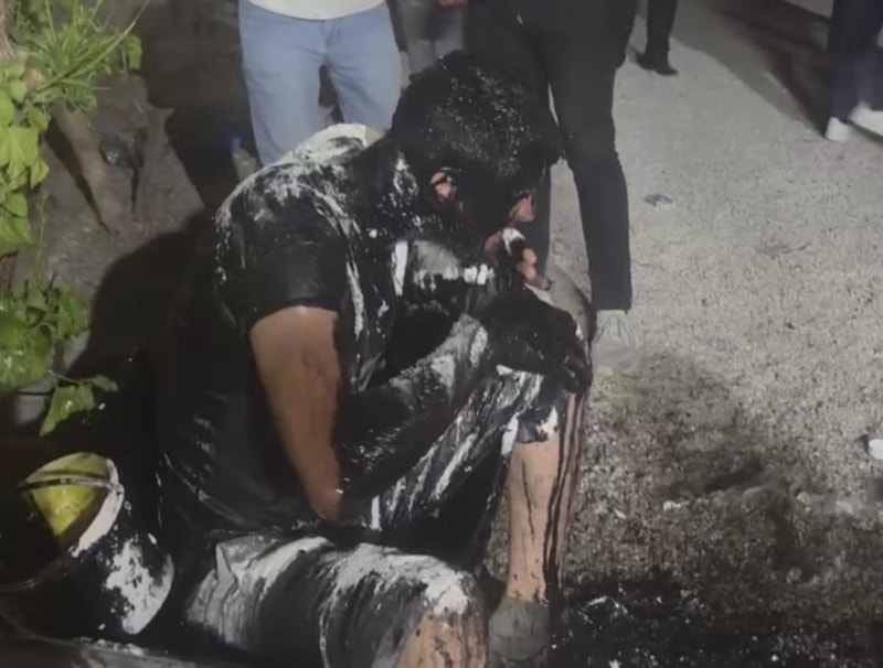 Damadın üzerine motor yağı, sıvı yağ, benzin, un, yumurta ve ketçap dökülürken, o anları cep telefonuyla kayda alındı.