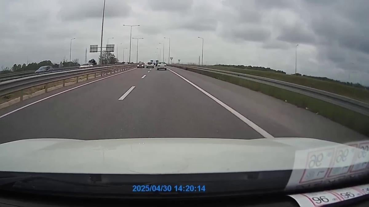 Araç sürücüsünün hem kendi hem de diğer sürücülerin canını ve hiçe sayarak, uyarılara aldırmadan yoluna devam ettiği anlar ise saniye saniye araç kamerasına kaydedildi.