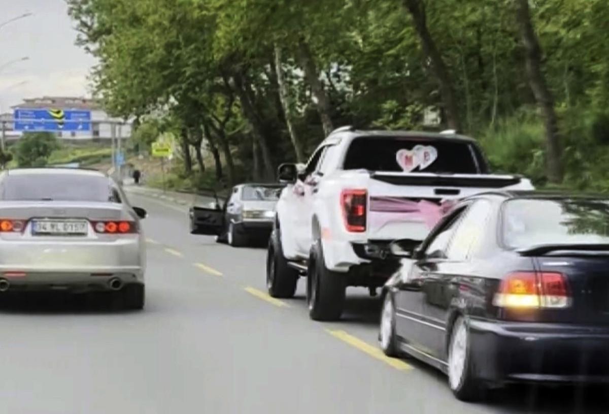 Zaman zaman trafik güvenliğini tehlikeye atabilecek durumlara sebep olan düğün konvoylarına bir yenisi daha eklendi.